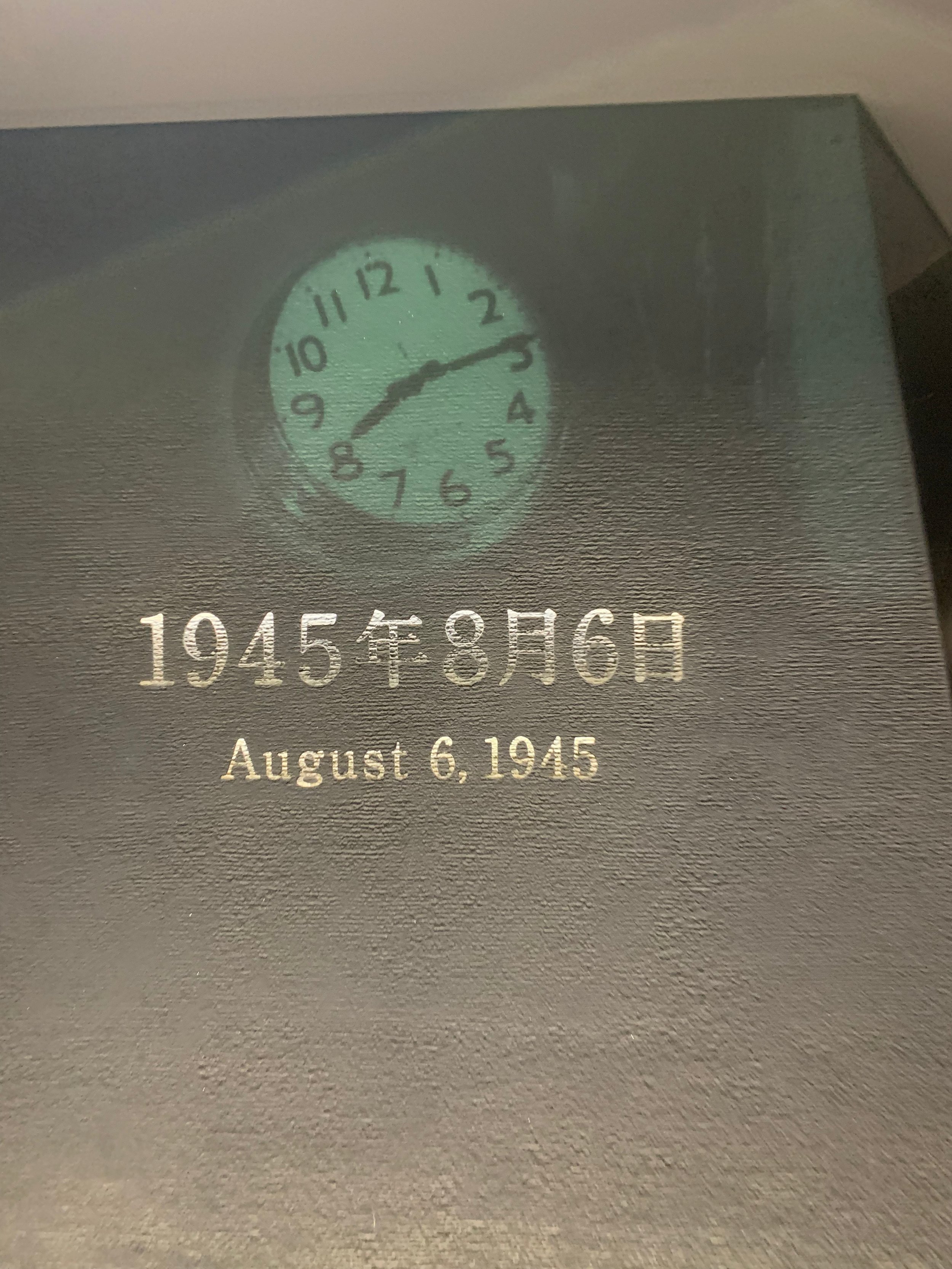 This clock is stopped at the time that the U.S. dropped the atomic bomb on Hiroshima