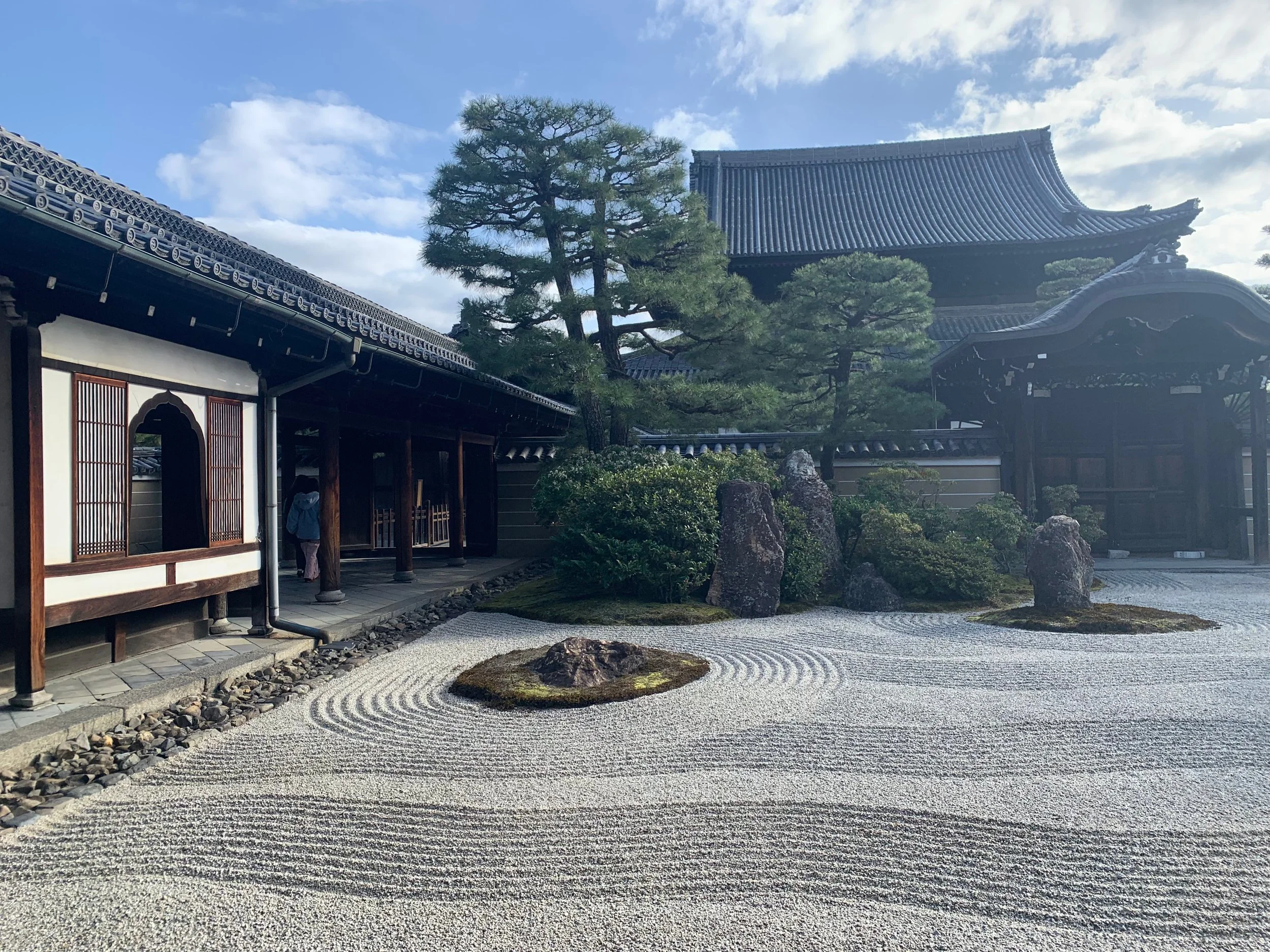 Temples: Kyoto is known for its temples, and we had time to see only a few of those that we had hoped to see. Fushimi Inari Taisha is crowded but so unique that you must go. The orange wooden posts of the temple create a walkway that goes on and on. It is beautiful. We did not have time for Nanzen-ji, Saiho-ji or Daigo-ji, which all sounded fascinating. I also had hoped to see the rock garden at Ryoan-ji, but we did not make it there. The temple we enjoyed the most was the one we just happened upon. Kennin-ji. We were walking down Hanami-koji street, and Kennin-ji is at the end of the road. We wandered in, and all around the grounds including by the rock garden. It was not crowded, and it was really peaceful and lovely. We also enjoyed our visit to the tiny Gio-ji Temple, near Arashiyama Bamboo Forest, see below.