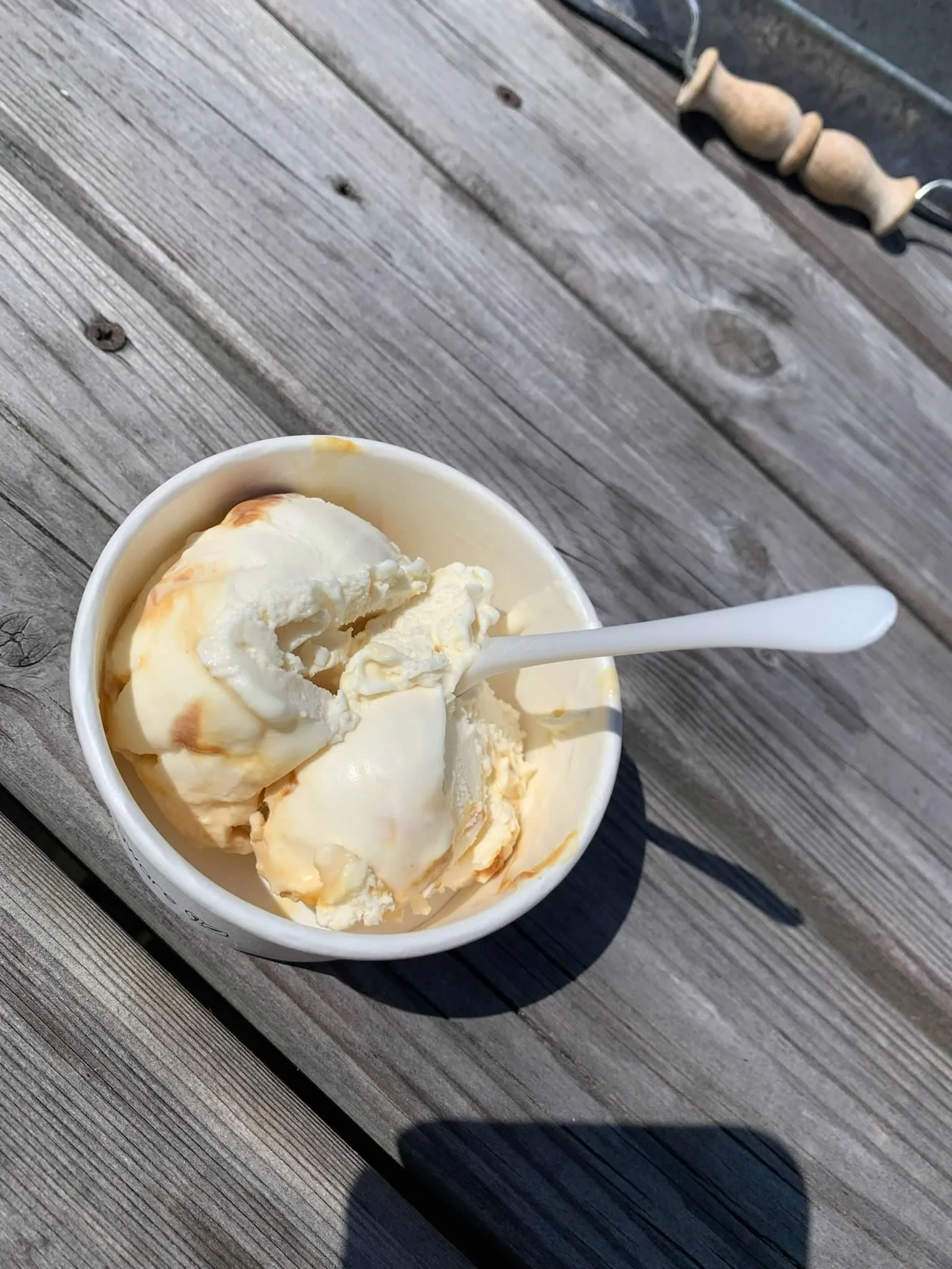 Deliciously creamy gelato from The Potato Shack Cafe at Woodlands Farm, made with fresh Jersey Cow milk