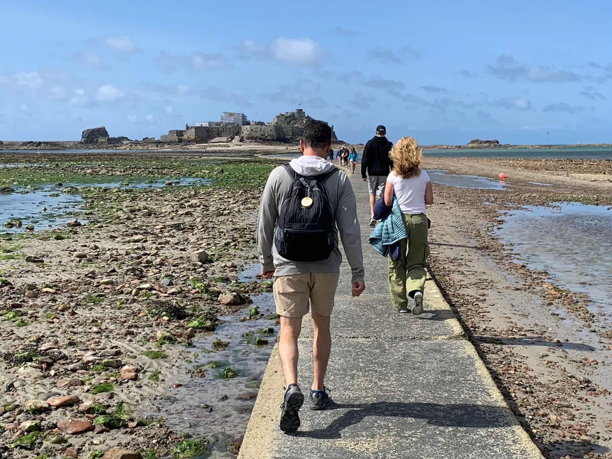 Walk during low tide to Elizabeth Castle, a fortress located on a tidal island off the coast of St. Helier