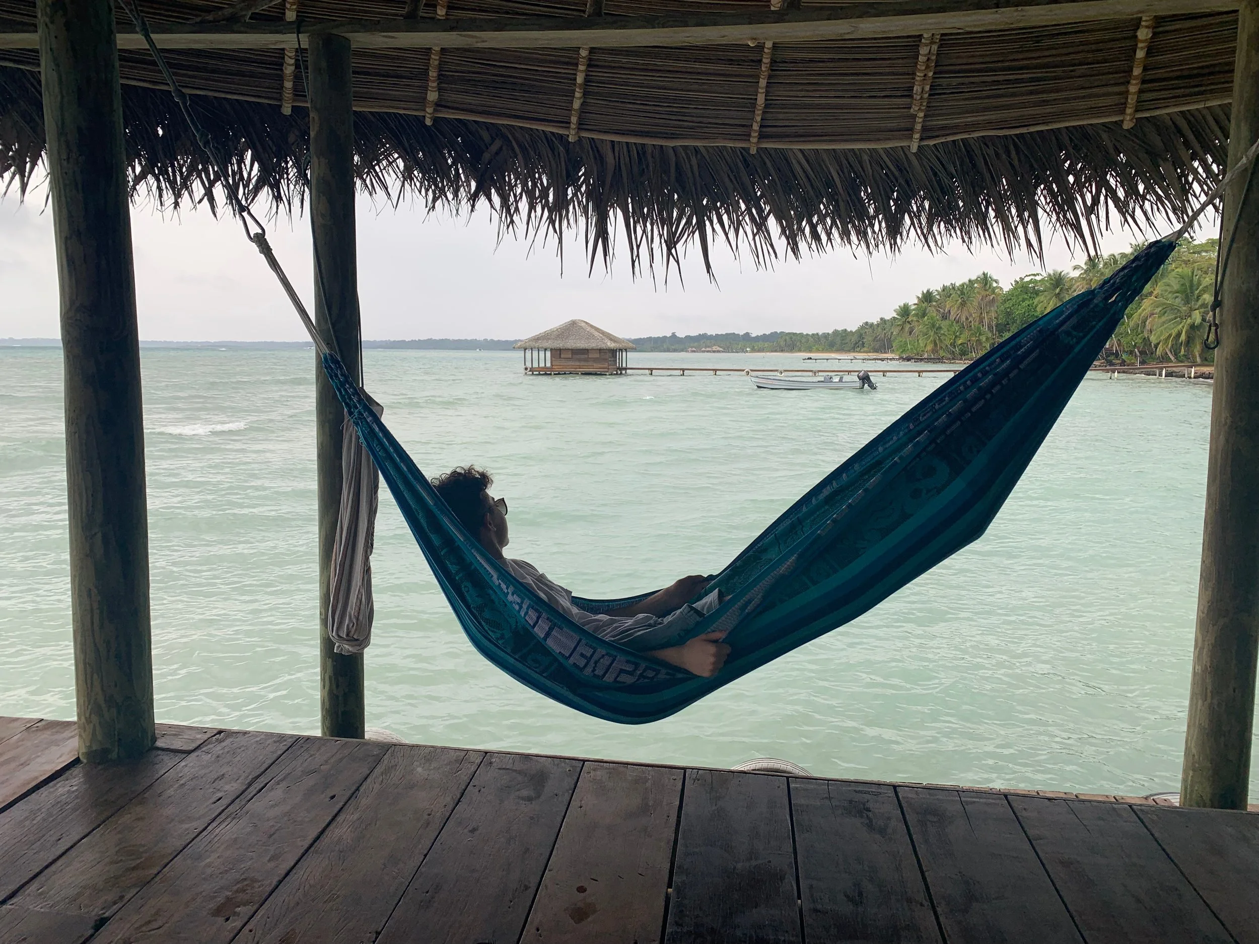 Casa Cayuco’s dock with water hammocks on our only sunny day