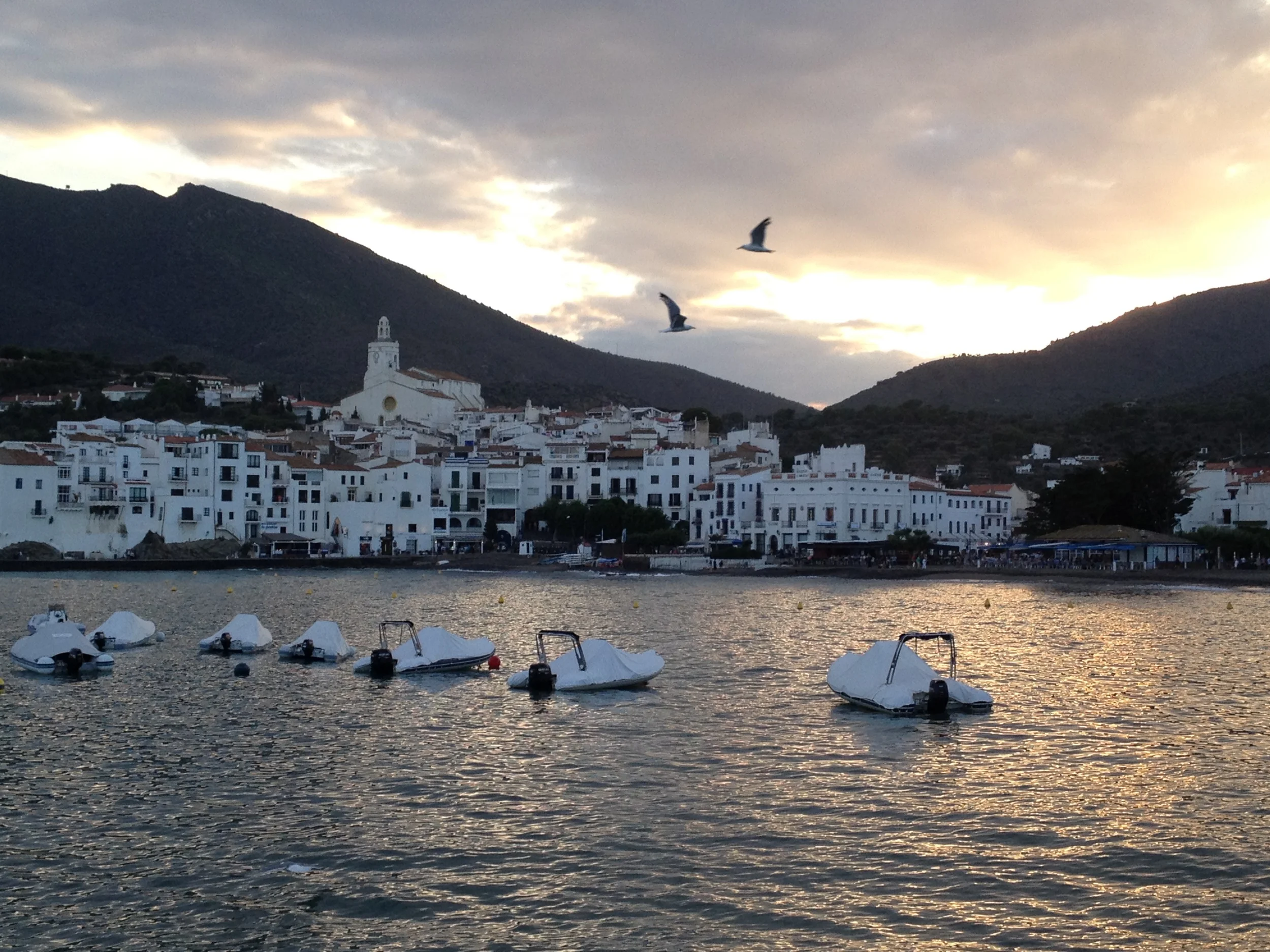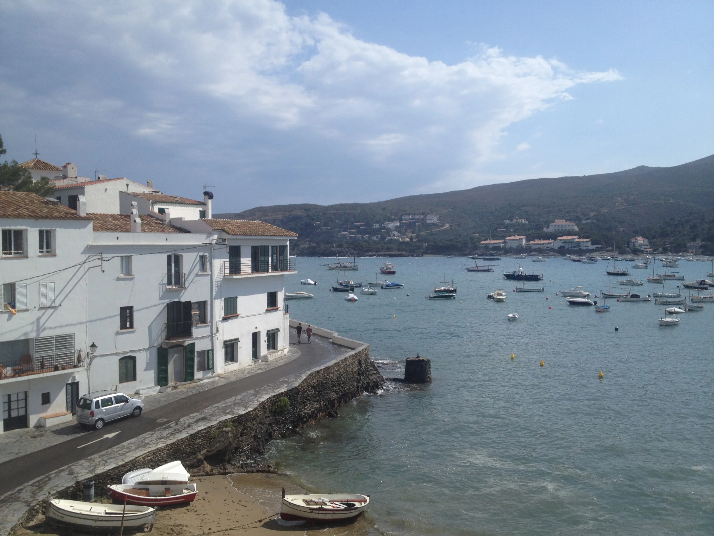 We found the Hotel Playa Sol, and were relieved when the staff told us we could park our car in the hotel's garage and leave it there for our entire four-night stay. Maneuvering into the European garage's tight parking spot was a challenge, but my husband's reward was a car-free existence in a Spanish seaside town. We walked through the front doors of the hotel, passing a pale blue and white living-room style lobby that was reminiscent of a seaside Cape Cod resort, and were given keys to our room. All nausea and doubts vanished as we entered our lovely, airy hotel room, with two sets of double glass doors leading to a long balcony. We dropped our bags and went straight out to the patio. We sat in the four deck chairs lined up in a row as though they were waiting just for our family. We gazed at the little beach below, with colorful rowboats stacked on the sand. We watched vacationers stroll by, either disappearing around a curve in the road beyond where we had driven, or strolling into the town by the sea. We could barely take our eyes of Cadaqués, a cluster of whitewashed buildings lining the bay and leading up the mountains, the setting sun reflecting off the sea and the boats in the harbor. The setting was perfect, and I hoped to spend a good portion of my stay on that terrace.